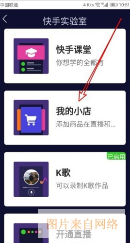 5、这时就会弹出快手实验室的页面,在页面中点击“我的小店”快捷链接。