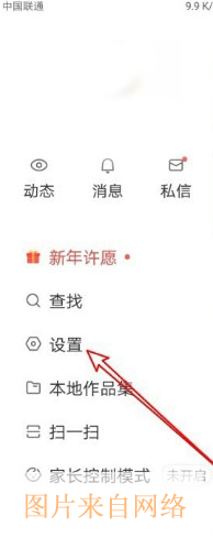 3、这时就会弹出快手的主菜单,在菜单中点击“设置”菜单项。
