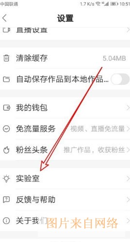 4、接下来在打开的快手设置页面中找到“实验室”的设置项。